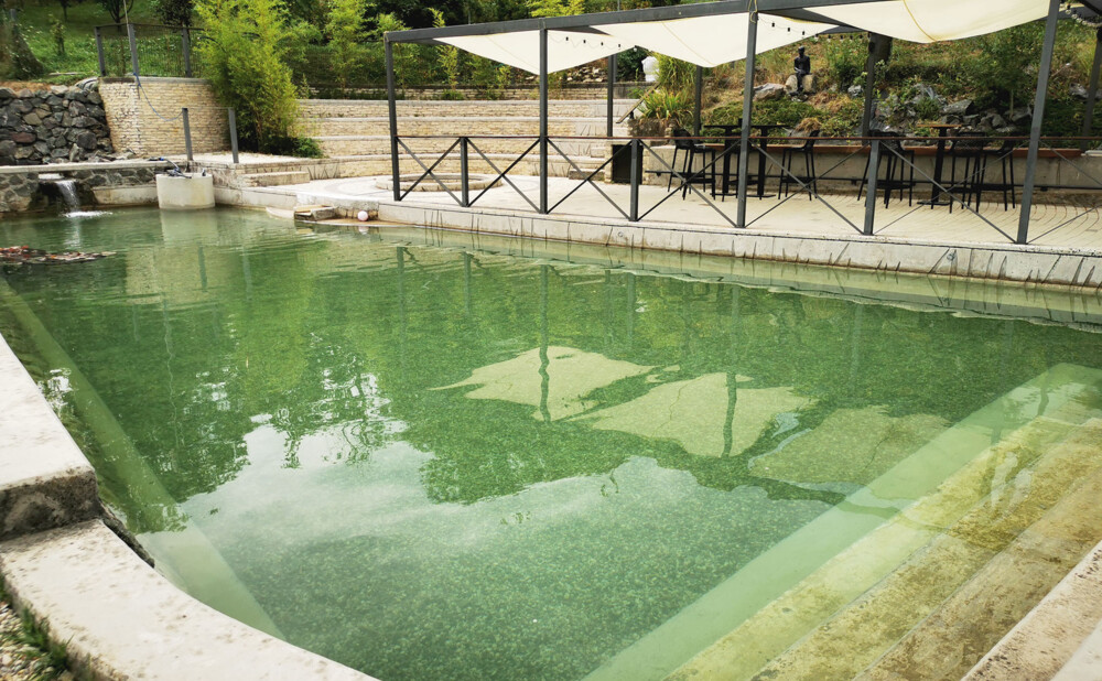 Biljke u tom procesu koriste hranjive tvari poput fosfata i nitrata – upravo one na kojima se alge hrane. Istodobno se voda kroz slapove - aerizira, obogaćuje kisikom i kao takva, pročišćena i „živa“, vraća se natrag u glavno jezero. Takav sustav algama ne ostavlja prostor da zavladaju površinom. Tajna bistre vode zapravo je vrlo jednostavna: voda mora biti u stalnom kretanju. Tekuća voda je zdrava voda. Zato u jezeru neprekidno rade pumpe koje osiguravaju kruženje, dok dodatna pumpa ubacuje zrak u sustav, čime se potiču aerobni mikrobiološki procesi i učinkovita razgradnja organske tvari.