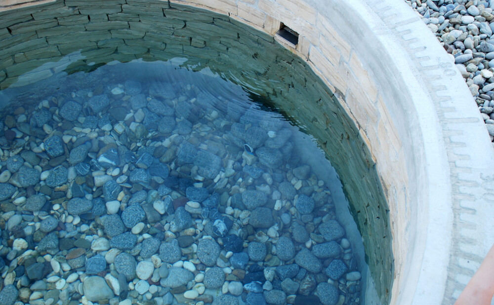 Godine 2010. započeli su prvi ozbiljni i promišljeni radovi. Nekoliko lepezasto raspoređenih izvora objedinjeno je u jedan glavni – okrugli izvor koji i danas funkcionira savršeno, tiho i pouzdano. Oko njega je izgrađen kameni krug, a na njegovu obodu ugraviran je kompas koji precizno pokazuje strane svijeta, s pažljivo označenim stupnjevima – simbol povezanosti vode, prostora i vremena. Iz izvora se voda površinskim preljevom ulijeva u jezero, i upravo tu nastaje prava čarolija. Voda u izvoru zadržava stalnu temperaturu, jednaku ljeti i zimi, dok se voda u jezeru tijekom toplih mjeseci prirodno zagrijava i postaje ugodna za kupanje. Tako je nekadašnja blatnjava rupa, korak po korak, izrasla u skladan vodeni prostor – od blata do zlata, mjesto mira, života i tihe ljepote.