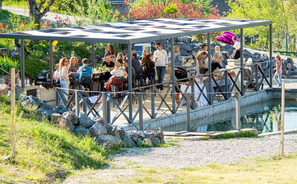 Smještena tik uz biološko jezero, s pogledom na park i okolno zelenilo, za 40-tak osoba stvara savršenu kulisu za domjenke na otvorenom.