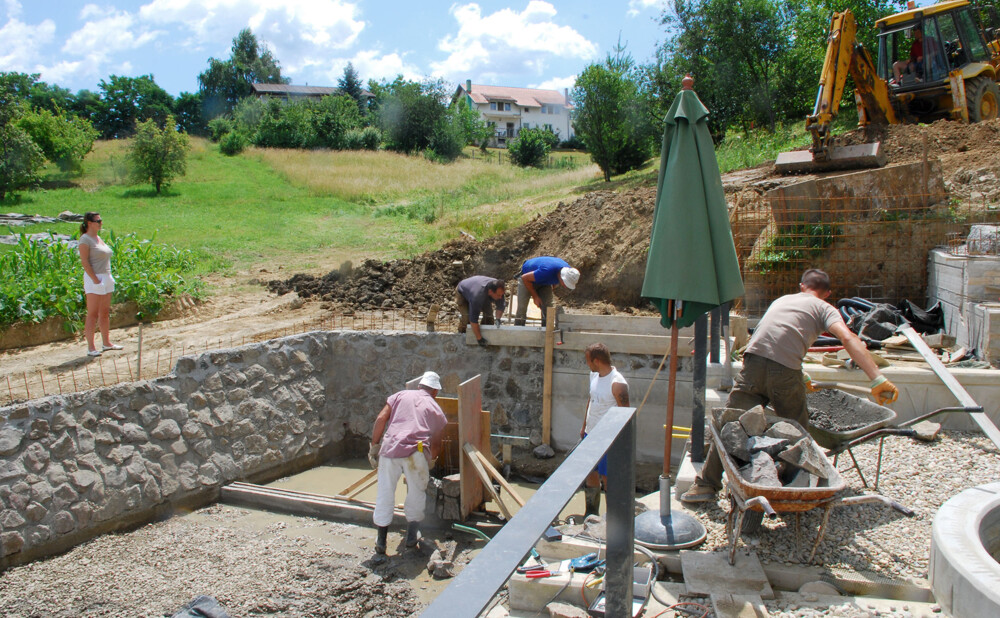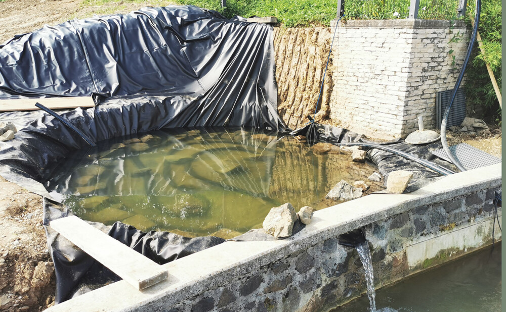 Za početak – pastrve su završile na roštilju. Barem je jedna stvar ispala fino kako treba. Plan je bio produbiti jezero i na dno položiti debeli sloj pranog šljunka, kroz koji prolaze perforirane cijevi. Uz to, odlučio sam izgraditi još jedno, manje biološko filtracijsko jezero (BOG filter), u koje bi se posadile vodene biljke – prirodni filter koji pročišćava vodu iz glavnog jezera. I to je to. Samo je još trebalo izgraditi „veliki akvarij” od 130 m³ vode – s dodatnim biološkim filterom. Ovaj put bez pastrva.