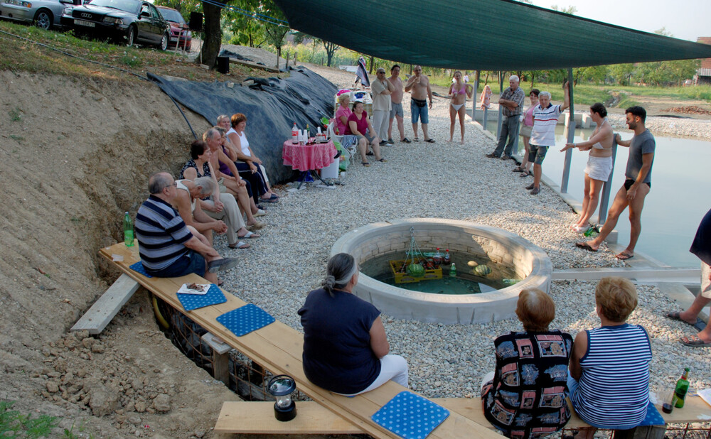 Godine 2010. započeli su prvi ozbiljni i promišljeni radovi. Nekoliko lepezasto raspoređenih izvora objedinjeno je u jedan glavni – okrugli izvor koji i danas funkcionira savršeno, tiho i pouzdano. Oko njega je izgrađen kameni krug, a na njegovu obodu ugraviran je kompas koji precizno pokazuje strane svijeta, s pažljivo označenim stupnjevima – simbol povezanosti vode, prostora i vremena. Iz izvora se voda površinskim preljevom ulijeva u jezero, i upravo tu nastaje prava čarolija. Voda u izvoru zadržava stalnu temperaturu, jednaku ljeti i zimi, dok se voda u jezeru tijekom toplih mjeseci prirodno zagrijava i postaje ugodna za kupanje. Tako je nekadašnja blatnjava rupa, korak po korak, izrasla u skladan vodeni prostor – od blata do zlata, mjesto mira, života i tihe ljepote.